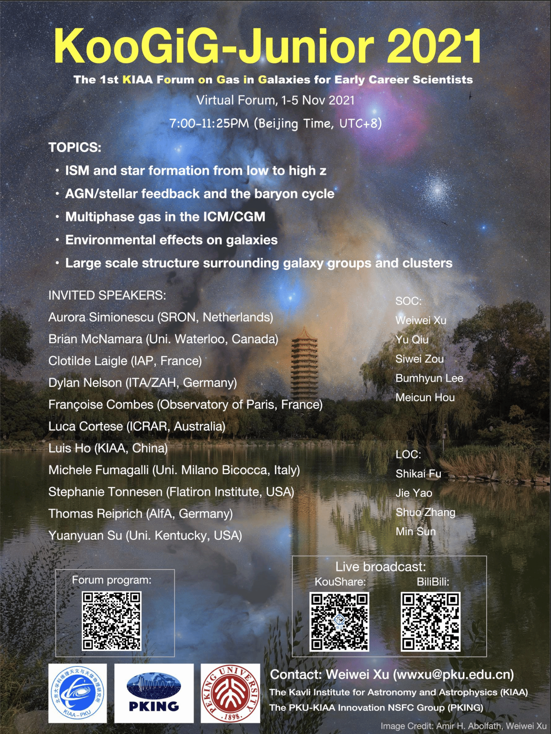 The 1st KIAA Forum on Gas in Galaxies for Early Career Scientists (KooGiG-Junior) will be held virtually on 1-5 Nov 2021. This forum is hosted by the Kavli Institute for Astronomy and Astrophysics (KIAA) and the PKU-KIAA Innovation NSFC Group (PKING).
