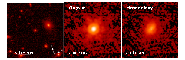 Thu, 2023-06-29 New images from the James Webb Space Telescope (JWST) have revealed, for the first time, starlight from two massive galaxies hosting actively growing black holes – quasars – seen less than a billion years after the Big Bang. The black holes have masses are