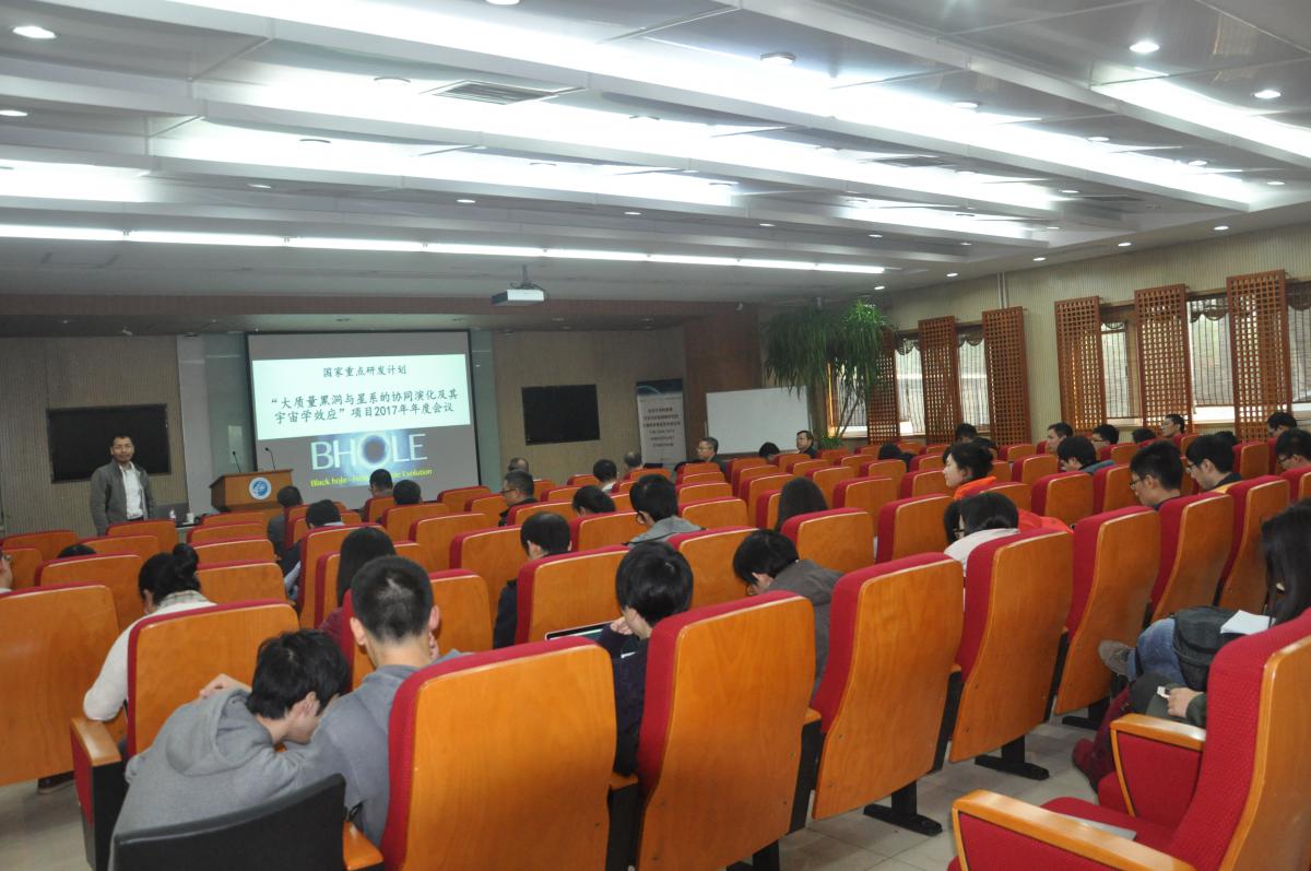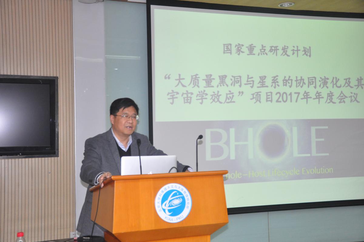 On October 27th, 2017, the annual meeting of the BHOLE (Black hole-Host Lifecycle Evolution) project was held at the Kavli Institute for Astronomy and Astrophysics, Peking University (KIAA, PKU). Qihuang Gong, Vice President of PKU, Peiwen Ji, Former Executive Deputy Director of Division of Mathematics & Physics, National Natural Science Foundation of China, Gang Zhao, Associate Director of National Astronomical Observatories of CAS, Suijian Xue, Associate Director of National Astronomical Observatories of CAS, Academicians Jingxiu Wang and Youyuan Zhou, Shude Mao, Director of Astrophysics Center at Tsinghua University, Zonghong Zhu, Professor from Beijing Normal University, Tinggui Wang, Director of Astronomy Center at University of Science & Technology of China, Fukun Liu, Director of Department of Astronomy at PKU, and members of the project attended the meeting.