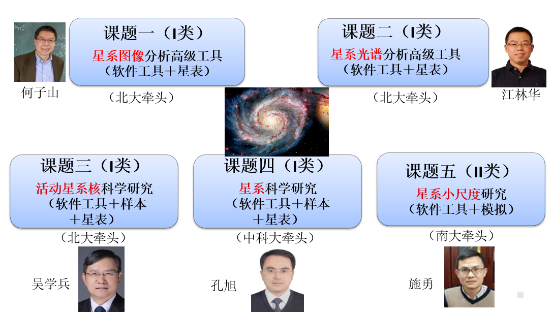 在CSST首批科学研究课题中,北京大学科学中心(以下简称北大科学中心)将负责星系和活动星系核领域五大核心课题的科学研究,即: